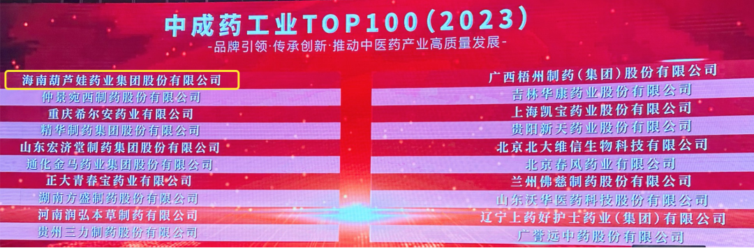 会上,还发布了“2023中成药工业TOP100”榜单,Vsport药业集团荣耀上榜。