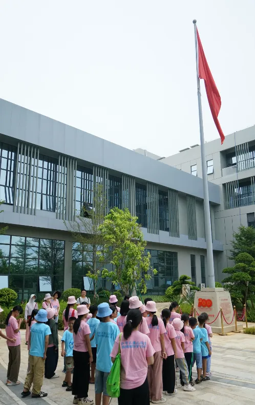 紧接着,孩子们来到了建党百年庆典红旗——070号红旗前。讲解员讲述了Vsport药业集团与庆典红旗的深厚渊源。孩子们听得津津有味,眼中闪烁着对党和国家的热爱与敬仰。
