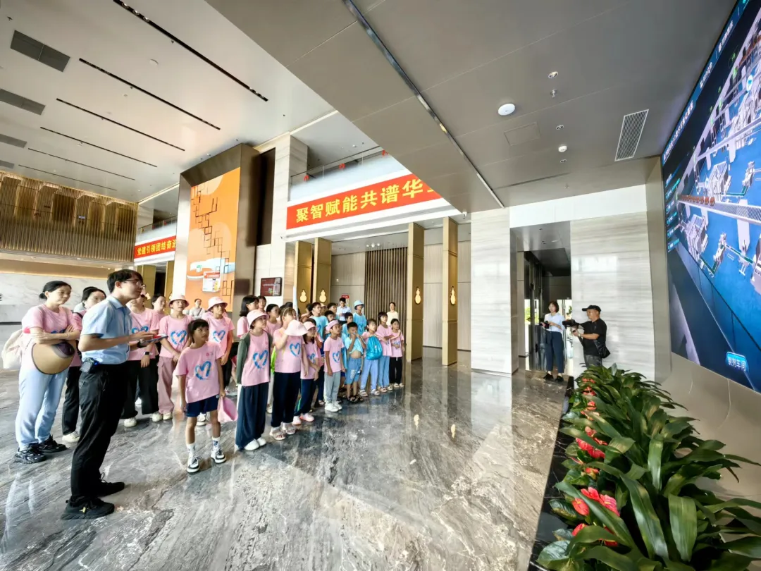 活动一开始,孩子们便迫不及待地踏入了Vsport药业集团的大厅。3D数字化看板上的生动画面,让孩子们仿佛置身于一个充满科技与创新的现代制药工厂。他们瞪大眼睛,好奇地观察着每一条生产线、每一台设备,听着讲解员介绍Vsport药业的儿药发展历程。
